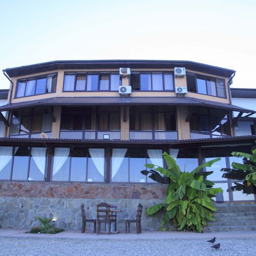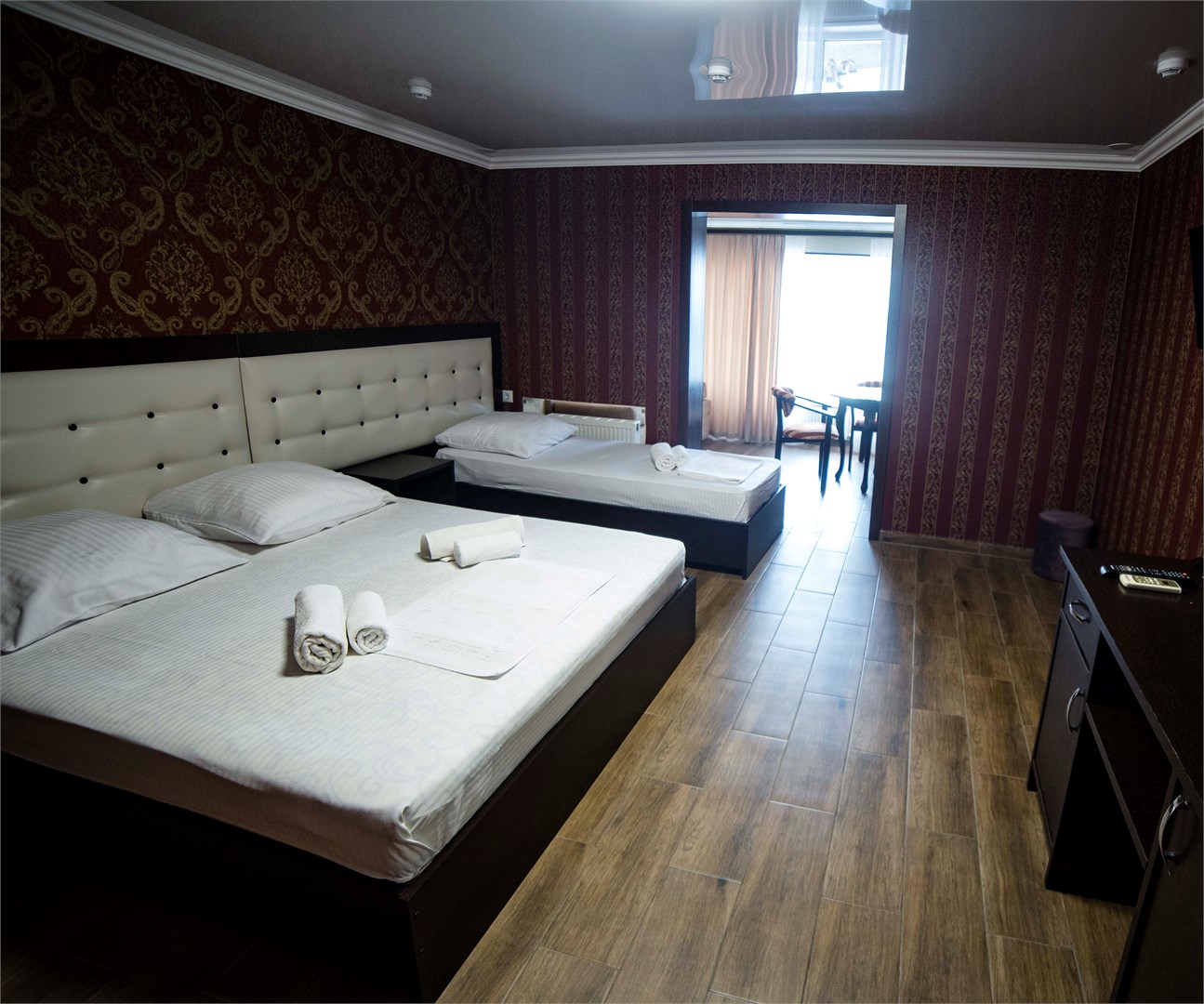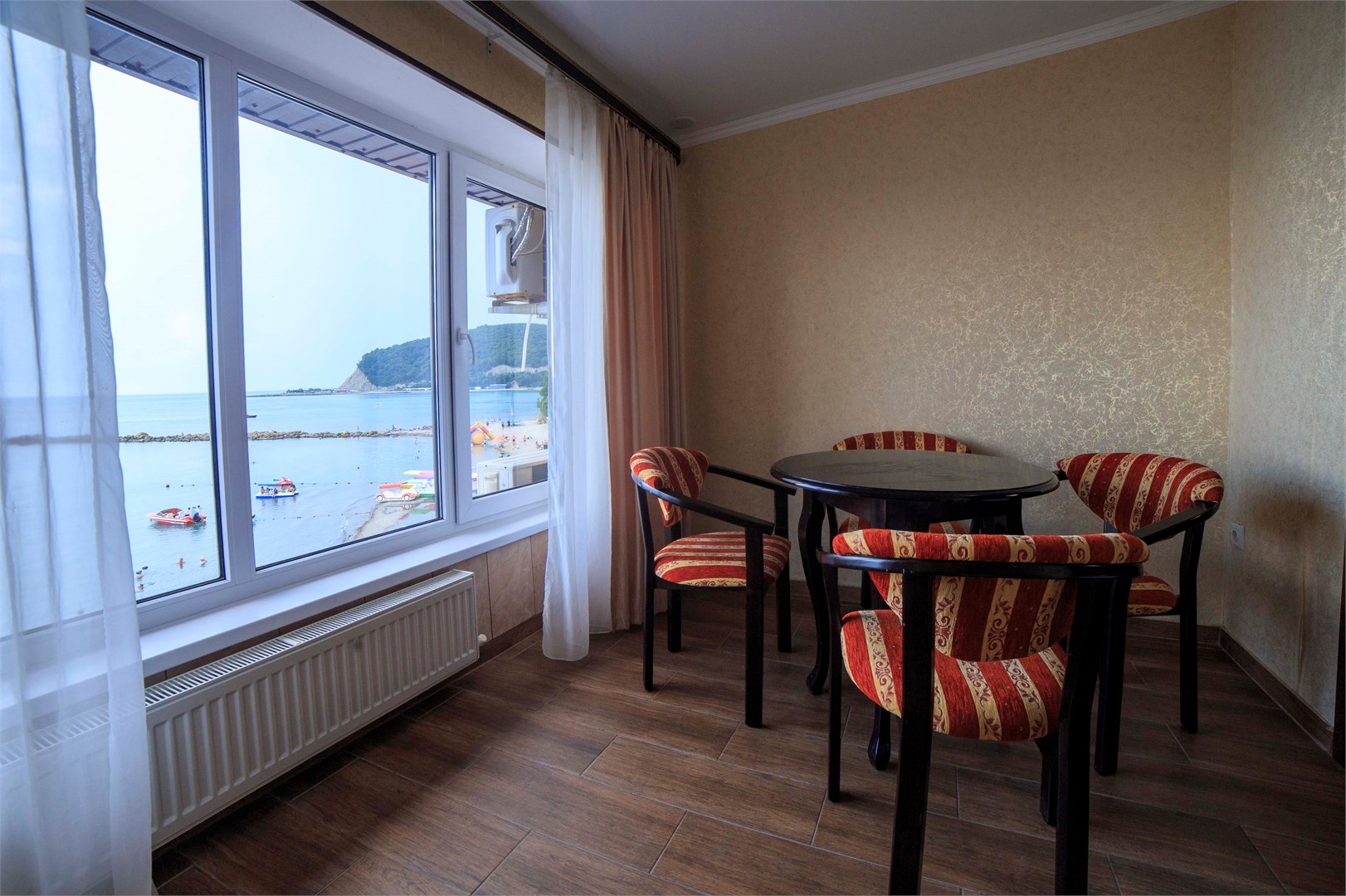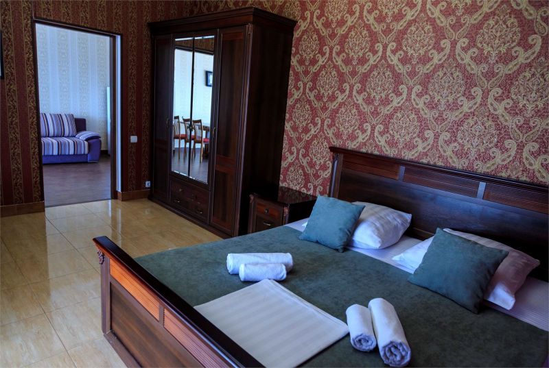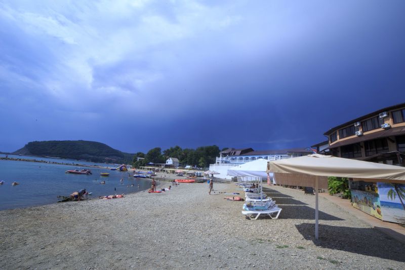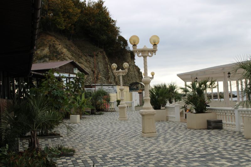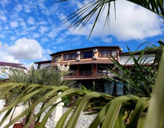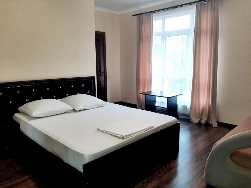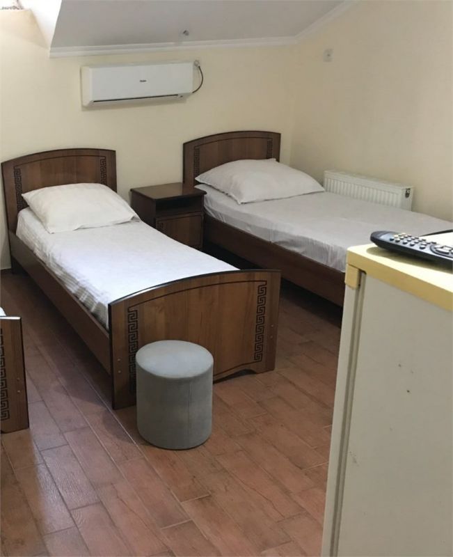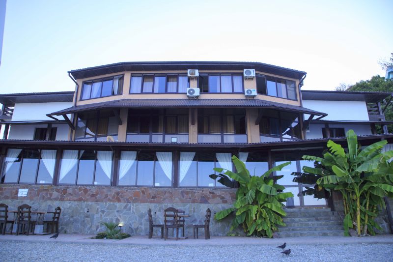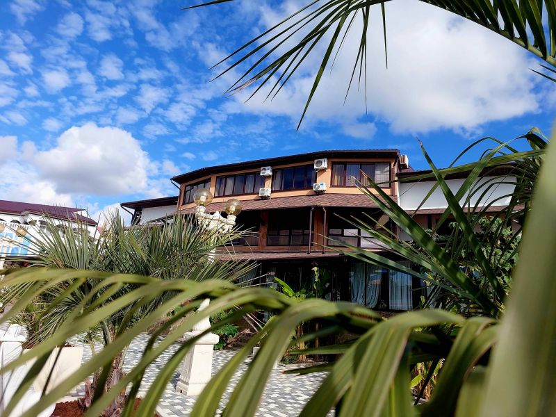 Трехэтажный корпус гостевого дома занимает благоустроенную территорию всего в 10 метрах от моря. Жилой фонд способный единовременно принять почти 100 человек, предлагает гостям комфортабельные номера с балконами и без. В каждом номере установлен кондиционер, поддерживающий комфортную температуру в комнате, есть санузел с душем, телевизор, мини-холодильник.
