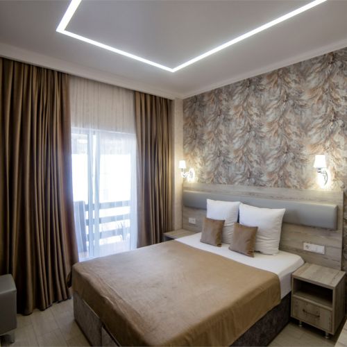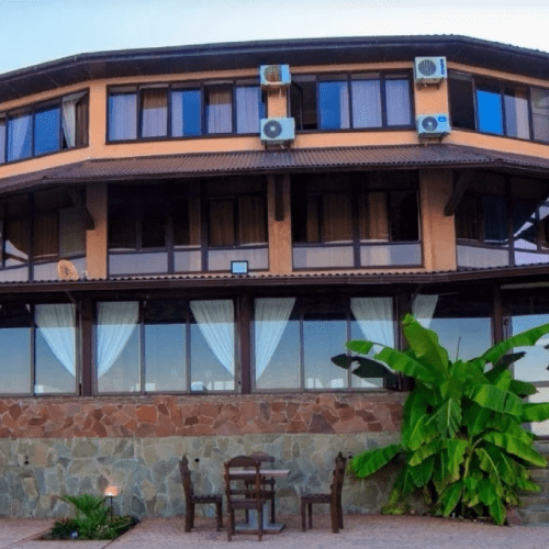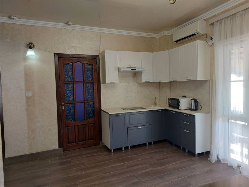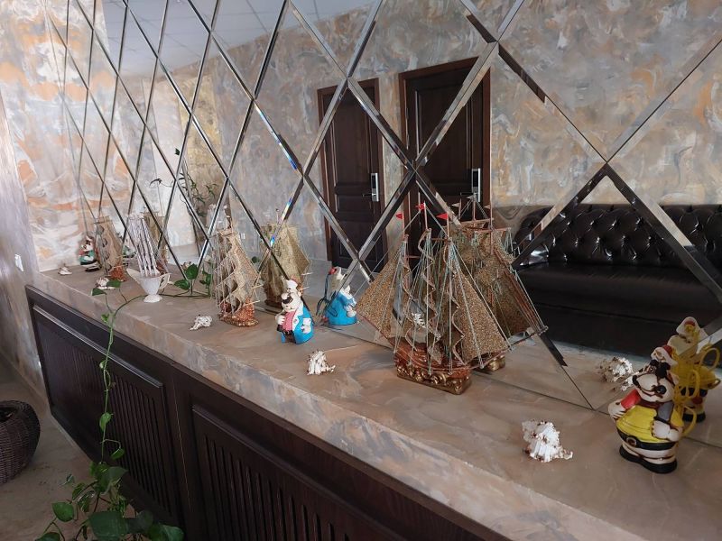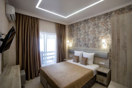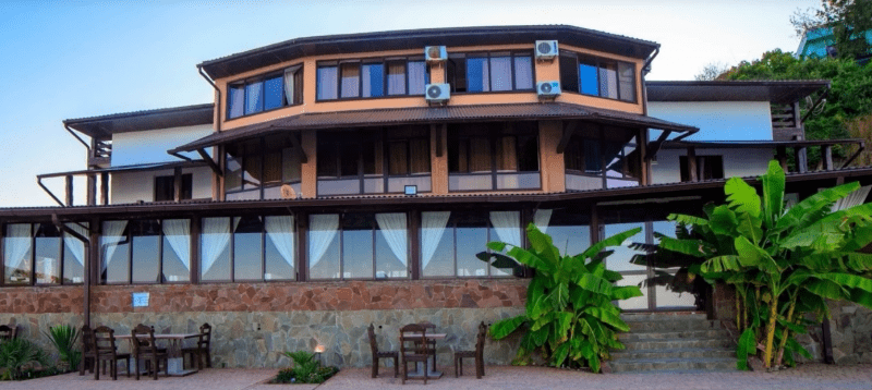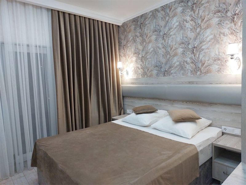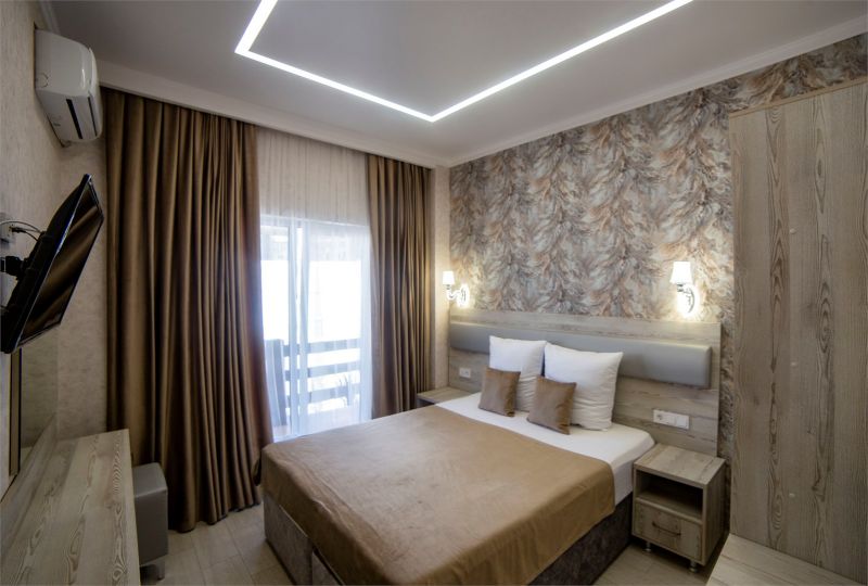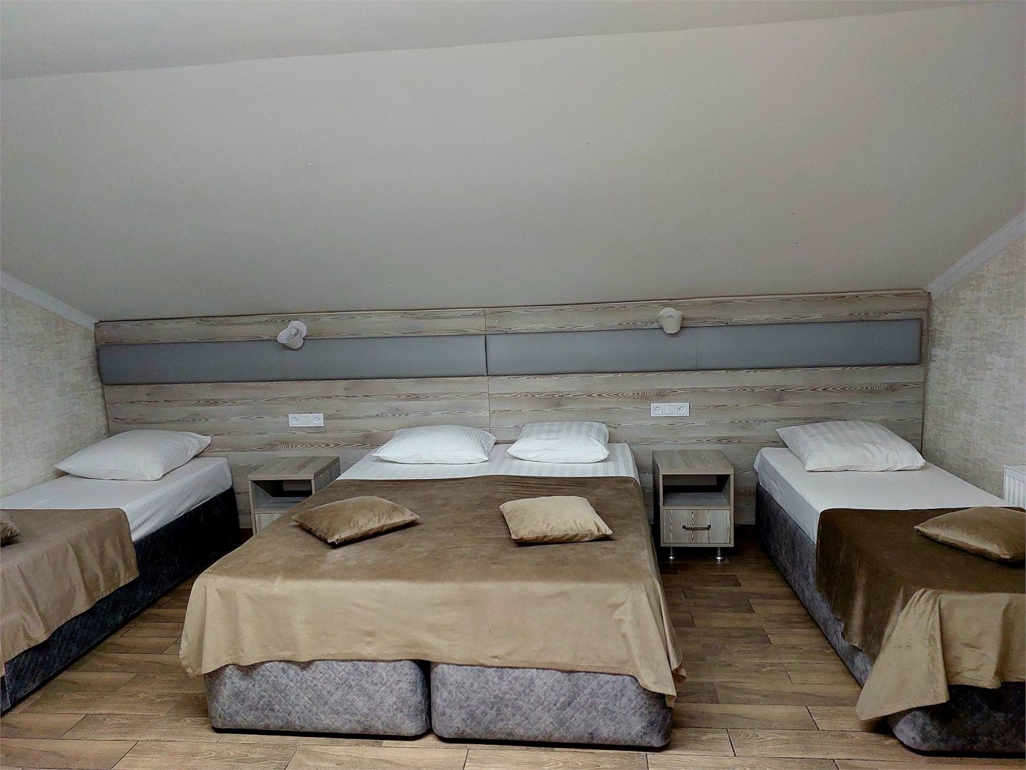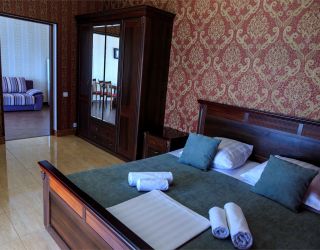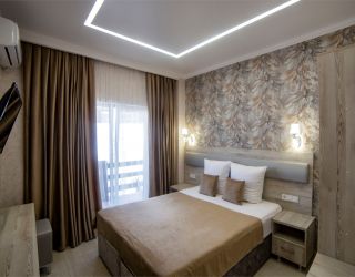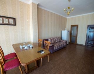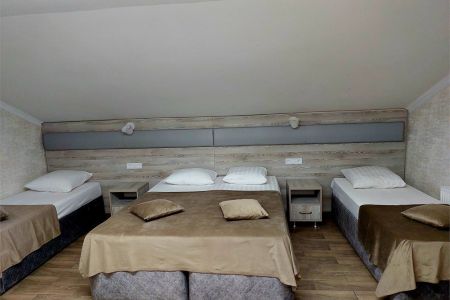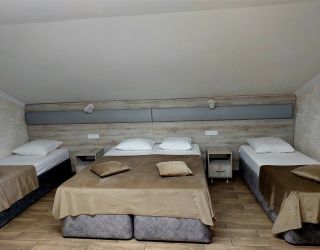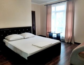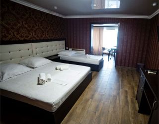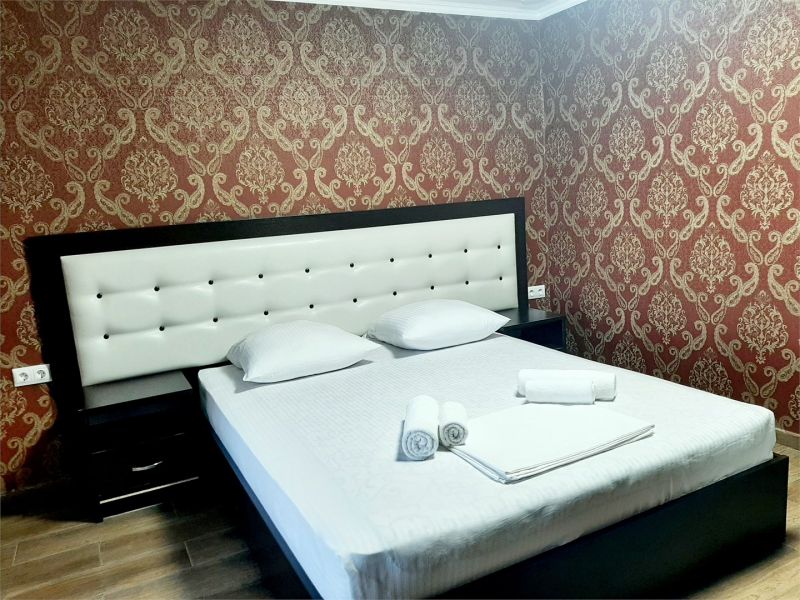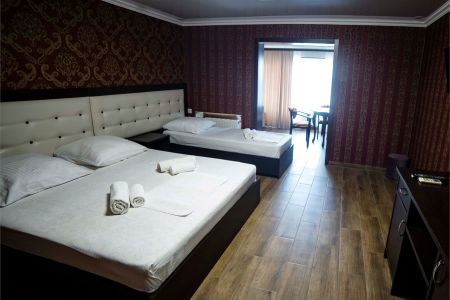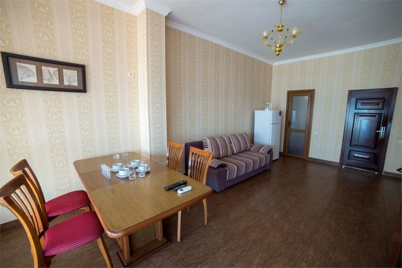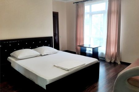 Трехэтажный корпус гостевого дома занимает благоустроенную территорию всего в 10 метрах от моря. Жилой фонд способный единовременно принять почти 100 человек, предлагает гостям комфортабельные номера с балконами и без. В каждом номере установлен кондиционер, поддерживающий комфортную температуру в комнате, есть санузел с душем, телевизор, мини-холодильник.